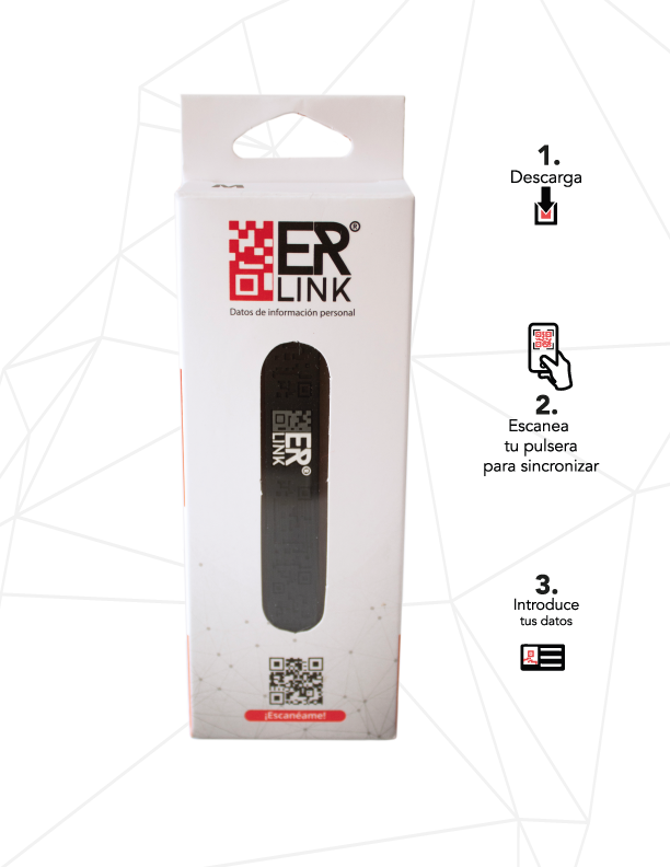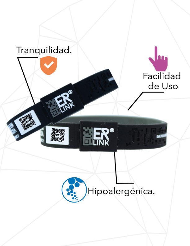 La Pulsera Link de ERLink es más que un accesorio, es una combinación perfecta de funcionalidad y diseño. Fabricada con silicona hipoalergénica de primera calidad, esta pulsera está diseñada ergonómicamente para proporcionar comodidad absoluta, ¡ni siquiera sentirás que la llevas puesta! Su innovador diseño bicolor te ofrece opciones: un lado vibrante para destacar y otro lado más discreto en tono oscuro, en ambos lados cuenta con la leyenda “Escanear en emergencia” o "Scan for Emergency" te guía rápidamente cuando el tiempo es esencial. ¡Elige según tu estado de ánimo o tu estilo del día! ¡Descubre la Pulsera Lik de ERLink: Seguridad y Estilo en tu Muñeca! ¿Buscas un accesorio que no solo complemente tu estilo, sino que también te brinde tranquilidad? ¡La Pulsera Link de ERLink es la solución perfecta! Fabricada con silicona hipoalergénica de primera calidad, esta pulsera está diseñada ergonómicamente para garantizar que apenas sientas su presencia en tu muñeca, ¡pero su impacto será inmenso! El innovador diseño de la Pulsera Link presenta dos colores, uno llamativo y otro oscuro para aquellos momentos en los que prefieres discreción. ¡Tú decides cómo lucirla! Cada Pulsera Link viene equipada con un código QR impreso en ambos lados. Este código te conecta instantáneamente con instrucciones precisas y claras, disponibles tanto en español como en inglés. Ya sea que estés saliendo a correr, de viaje o simplemente disfrutando de tu día a día, la Pulsera Link de ERLink es tu compañera confiable. ¡Adquiere la tuya hoy mismo y lleva la seguridad y el estilo siempre contigo! ¡Compra ahora y disfruta de la tranquilidad que mereces!